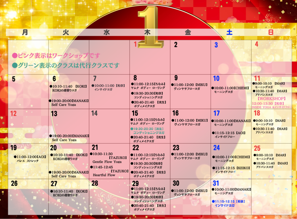 2026年1月のクラス予定表